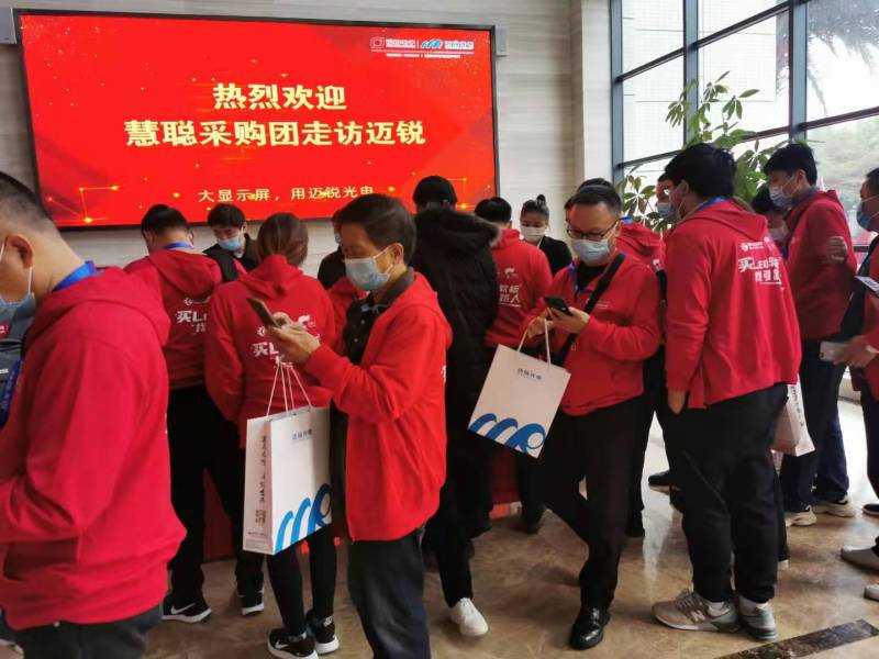 采購團近距離了解邁銳光電全線LED顯示產(chǎn)品,參觀了邁銳光電先進的、高度自動化的LED顯示屏生產(chǎn)線。期間,采購團一行受到了邁銳光電公司領(lǐng)導及全體員工的熱情接待,由此,正式開啟了“慧聰LED顯示屏十佳品牌專場巡回參觀”的行程。