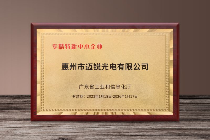 雙喜臨門啟新程,奮進爭先正當時!近日,邁銳光電被廣東省工業(yè)和信息化廳評選為“廣東省2022年專精特新中小企業(yè)”及“廣東省2022年創(chuàng)新型中小企業(yè)”,并頒發(fā)榮譽牌匾。