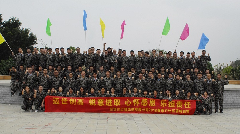 為進(jìn)一步加強團(tuán)隊建設(shè),有效培養(yǎng)團(tuán)隊精神,增強團(tuán)隊凝聚力、執(zhí)行力和團(tuán)隊協(xié)作能力,邁銳光電于1月26日在惠州開展主題為“邁世創(chuàng)高,銳意進(jìn)取,心懷感恩,樂擔(dān)責(zé)任”的2018春季戶外拓展培訓(xùn),公司近百名員工參加了此次拓展活動。