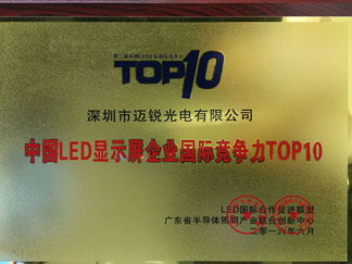 篳路藍縷,披星戴月,崢嶸十年,昂首闊步,邁銳光電從最初2006年注冊資產(chǎn)只有100萬元,一躍發(fā)展成LED行業(yè)巨子,2012年銷售額超過5個億,2014年7月,邁銳光電注冊資金增加至1億。2015年6月,獲評“年度中國最具行業(yè)競爭力LED顯示屏企業(yè)TOP10”榮譽。2016年6月8日,邁銳光電再度榮膺“中國LED顯示屏企業(yè)國際競爭力TOP10”。高瞻遠矚,永不止步,邁銳光電國際化集團的步伐邁得越來越堅定。