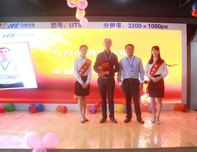 金秋十月,邁銳碩果累累!9月份邁銳的銷售業(yè)績突破環(huán)比新高,取得驕人的成績!這是全體邁銳人辛勤工作的成果!對于業(yè)績最直接的貢獻者——優(yōu)秀的銷售同事,公司制訂了豐厚的勵獎方案。今天,16年10月11日,我們共聚一堂,齊集在公司展廳,為團隊中特別優(yōu)秀,業(yè)績最好的銷售同事奉上獎杯、獎狀、獎金,表彰他們的努力和感謝他們的付出!