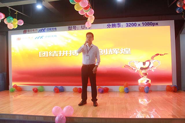 頒獎結束后,主持人請陳總上臺為大家講話。陳總肯定了大家努力和成績,并深深地感謝同事的辛勤勞動,一再地說:同事們辛苦了!謝謝大家!陳總誠懇謙虛的態(tài)度感動了在場每一位同事,大家不斷以熱烈的掌聲來表達對陳總的敬意!邁銳有個好老板!邁銳也有一班好同事!邁銳的明天一定會更好!
