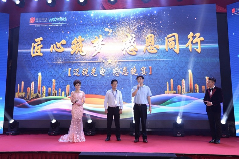 發(fā)布會(huì)后感恩晚宴開場(chǎng),充滿異域風(fēng)情的舞蹈、生動(dòng)精彩的沙畫表演、動(dòng)感十足的3D人屏互動(dòng)秀等精彩表演,現(xiàn)場(chǎng)氣氛空前熱烈,歡呼不斷。邁銳光電與在場(chǎng)的所有來賓舉杯共慶,卞董和陳總的精彩祝詞,更是說出了每一位邁銳人的心聲和愿望,讓我們對(duì)邁銳光電的未來更加充滿信心和動(dòng)力。