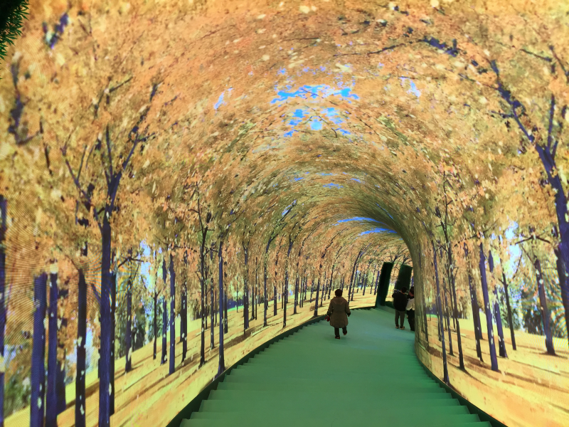 走進“時光隧道”,從騰飛的巨龍到盛開的牡丹,春日鳥語花香、夏日綠樹成蔭、秋季落英繽紛、冬季銀裝素裹,從四季變換到穿越神秘太空,各種奇幻場景的切換,震撼的視覺享受,仿佛身臨其境,就像時光真的在穿越一樣。